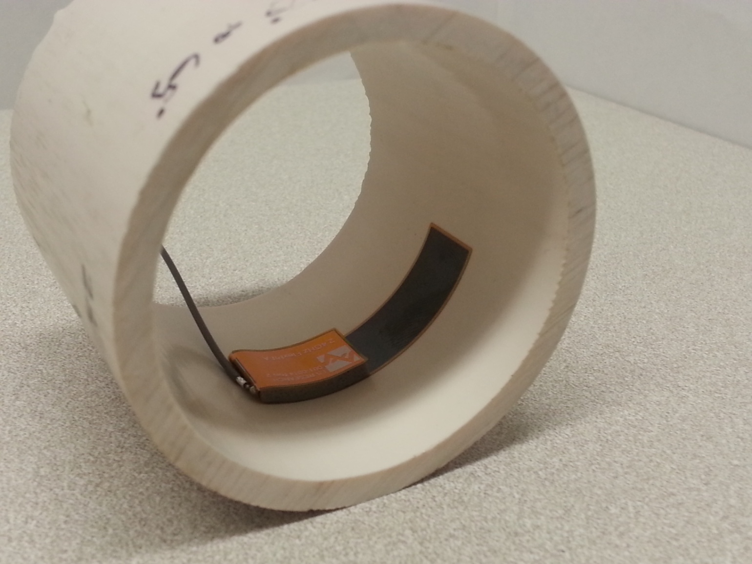 Flat surface measurements were done with the antenna centered on a 1.5 mm-thick plate of polycarbonate. Curved surface measurements were taken by placing the antenna on the inside and outside of different diameter PVC tubing.