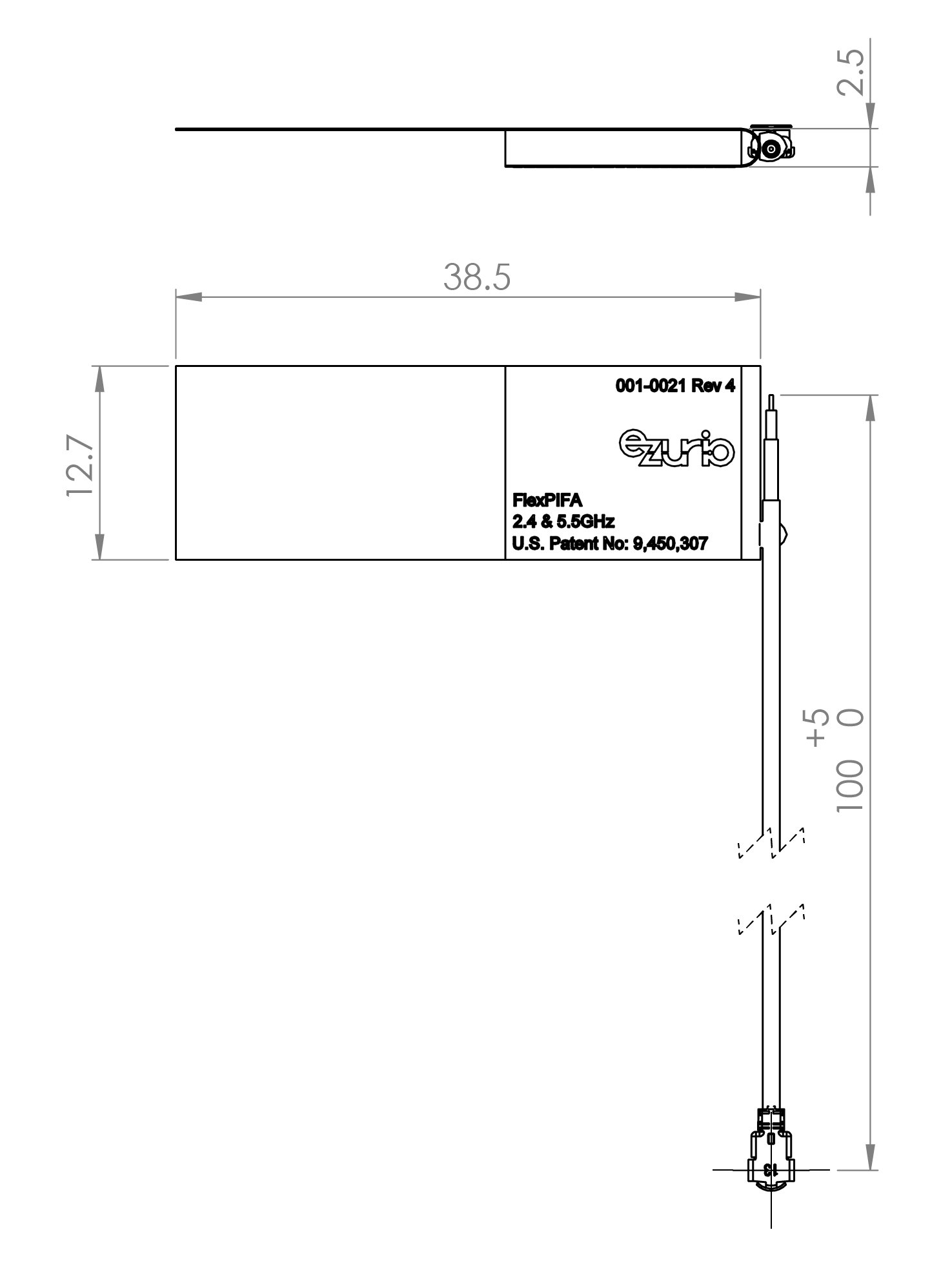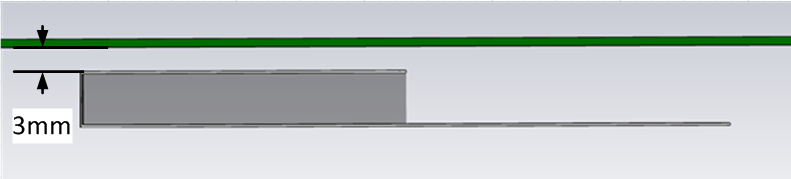 The main element should be kept clear of any non-metal objects (such as plastics) on top of it by at least three millimeters (see below). Similarly, the two long sides of the FlexPIFA should be kept clear of any non-metal object by at least two millimeters (see below). A one-millimeter clearance should be observed from the ground wall to any non-metal object. Mounting the FlexPIFA in a situation that does not allow for these clearance recommendations may change the gain characteristics stated in the datasheet, which could impact overall range of the wireless system.