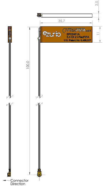 Note: Specifications are based on the 100mm cable length, standard antenna version with MHF1 / U.FL connector. Varying the cable length or type or connector will cause variations in these antenna specifications.