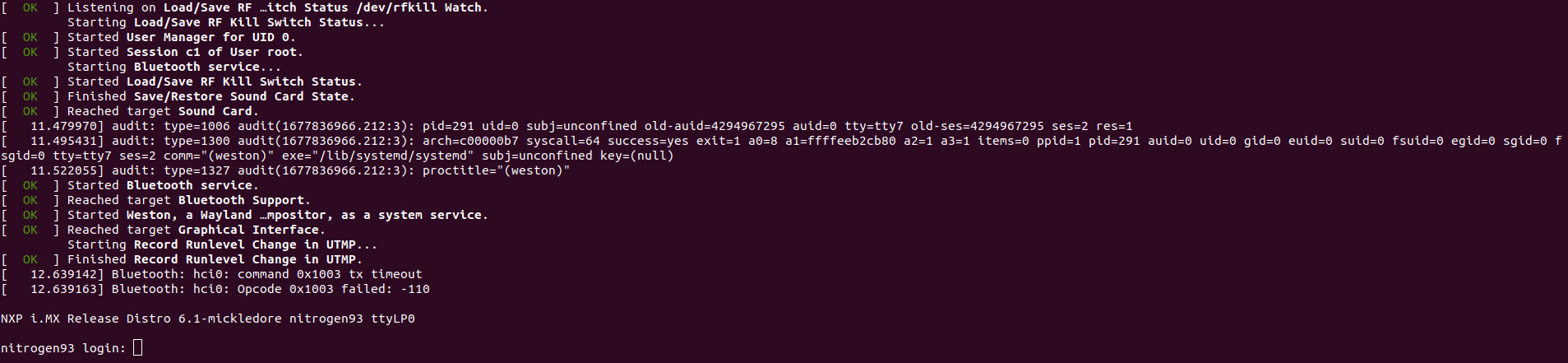 Once the image have been flashed, reset the board and it will boot into Yocto. See image above for fully booted image.