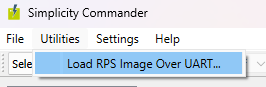 2.) Open the latest version of Simplicity Commander and select Load RPS Image over UART… from the Utilities menu.