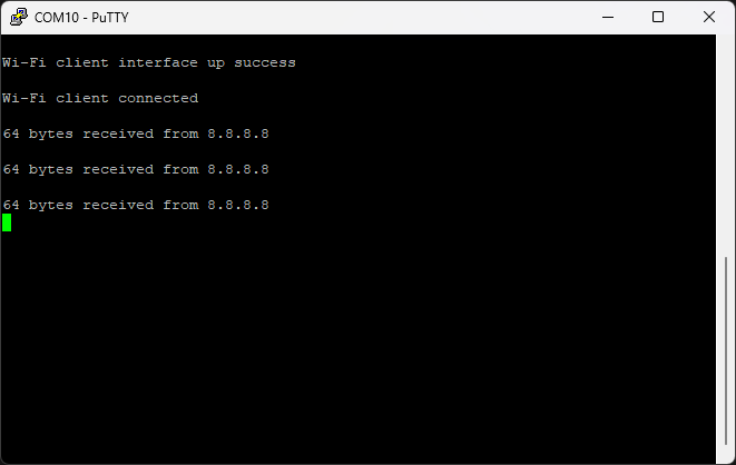 Here is an example of debug output from the station_ping example, pinging a remote host over Wi-Fi:
